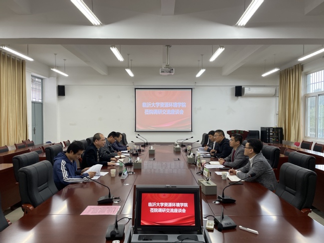 蓝天水简要介绍学院情况,余坤勇着重介绍学校成立碳中和学院、碳中和研究院以来所开展的工作及取得的成效。王梁介绍临沂大学资源环境学院基本情况和初步工作设想。双方围绕碳中和学院的运行机制、人才培养模式和“双碳”相关研究等方面内容进行深入的交流。