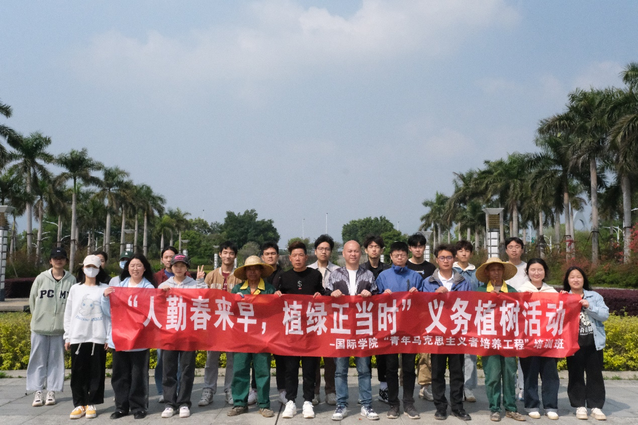 4月8日上午,国际学院开展“人勤春来早,植绿正当时”义务植树活动。学院“青年马克思主义者培养工程”学员与团学志愿者参与了此次活动。