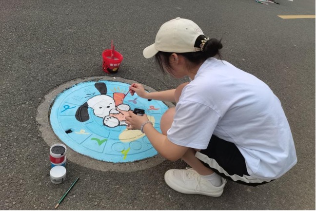 本次活动共吸引150多名同学参与。活动过程中,同学们以井盖为画布,手持画笔与调色盘,一笔一笔认真勾画,大家发挥奇思妙想,绘出各种鲜明亮丽、积极活泼富有生机的井盖涂鸦,为校园增添了一抹绚丽的色彩。