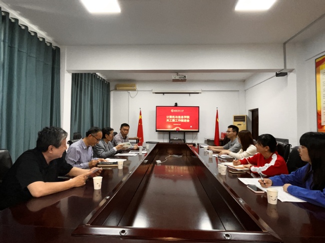 4月14日下午,计算机与信息学院在学院302会议室召开关工委工作推进会。院党委书记钟一文,院党委副书记、关工委主任张明辉,院关工委副主任张朝阳,院团委书记、关工委秘书王晓,以及关工委委员和部分辅导员参加会议。会议由张明辉主持。
