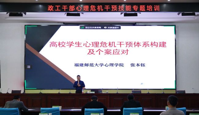 为切实推进学校心理健康教育工作,进一步提升我校政工队伍心理危机干预能力,4月13日下午,我校邀请福建师范大学心理学院党委副书记张本钰在禧强楼学术报告厅开展主题为《高校学生心理危机干预体系构建及个案应对》的专题培训,全校130余名政工干部参加此次培训。