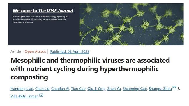近期,我校资环学院周顺桂教授团队连续在国际级权威期刊《The ISME Journal》《Environmental Science & Technology》和《Trends in Biotechnology》上发表“超高温堆肥”和“生物膜水伏技术”等系列研究成果。