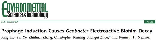 近日,周顺桂教授团队在环境领域著名期刊Environmental Science & Technology上在线发表了题为“Prophage Induction Causes Geobacter Electroactive Biofilm Decay”的研究论文。该论文首次揭示了G. sulfurreducens具有噬菌体,并证实了G. sulfurreducens电活性生物膜衰亡的真正原因是受噬菌体攻击。该研究为理解噬菌体与电活性微生物互作提供了第一个实验证据,为实现微生物电化学系统长期高效运行提供了技术方案。