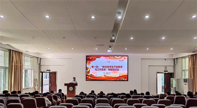 在首场专题中,耿银行从新时期学生干部素养与工作实务入题,围绕习近平总书记对当代青年的殷殷嘱托、谆谆教诲,引导全体学员深刻认识新时代青年骨干的责任与担当,深学透悟马克思主义理论和习近平新时代中国特色社会主义思想,在学思践悟中坚定理想信念,在奋发有为中践行初心使命,做马克思主义坚定的信仰者、学习者、实践者和捍卫者。他指出,新时期学生干部要以“仁义礼智信”规训自我,以校训“明德、诚智、博学、创新”要求自己,把“为学、为事、为人”的标准立起来,不断涵养“五种品格”,对照职责、对标使命、对标担当,在学中干、在干中学,着力在提高自律能力、主动能力、语言表达能力、思维能力等方面加强能力锻造,在尽职履责、强化担当中不断提升综合素质,最终体现到高质量推进学生工作上。