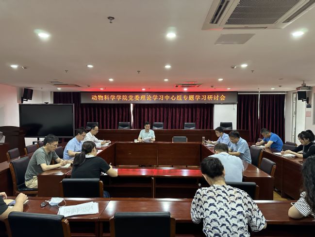 4月18日上午,动物科学学院党委在学院会议室召开理论学习中心组学习会,传达学习习近平新时代中国特色社会主义思想主题教育工作会议精神和《关于在全党大兴调查研究的工作方案》文件精神。学院党委委员、党支部书记等参加。会议由学院党委书记陈为德主持。