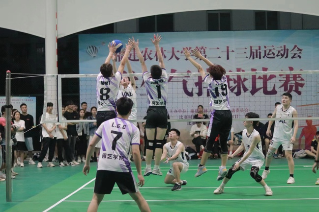 比赛分两个阶段共进行了128场比赛,首先分组循环赛,各小组前两名再次进行循环赛。赛场上运动员们精神饱满、配合默契、顽强拼搏,精准发球、飞身救球、大力扣杀、奋力拦网,队员们的精湛球技引来观众一阵阵的喝彩,最终农学院男队、园艺学院女队夺得冠军。