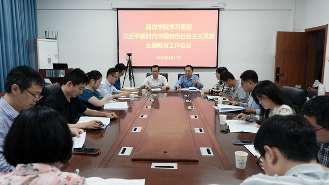 4月20日下午,海洋学院党委在学院会议室召开学习贯彻习近平新时代中国特色社会主义思想主题教育工作部署会议。学院领导班子成员、党支部书记、各教学系(实验中心)负责人、科级干部、辅导员等参加。会议由学院党委书记黄毅军主持。