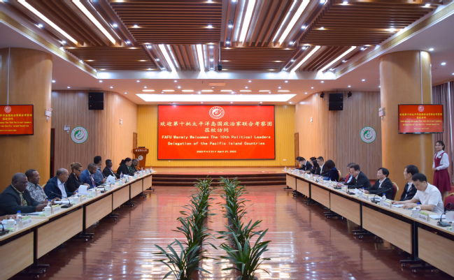 4月21日上午,以汤加王国副首相兼司法大臣萨缪·瓦伊普卢为首的第十批太平洋岛国政治家联合考察团一行莅校访问。斐济、汤加驻华使馆官员代表,中联部信息编研室主任可志忠,省外办党组成员、副主任陈国全,我校校长兰思仁、副校长郑宝东及国家菌草工程技术研究中心首席科学家林占熺,统战部、国际处等部门负责人陪同考察。