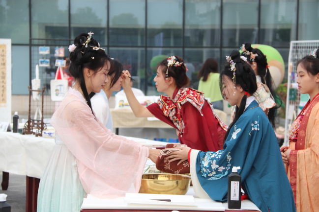 本次活动还在旗山校区报告厅前广场开展了文艺演出,汉服舞蹈《祓锲礼》以祓锲为主题,将古人进行祓锲仪式的场景展现出来,歌曲《兰亭序》与《烟雨行舟》营造了浓厚的书画氛围。最后,书法家们在古筝伴乐《开天》《采薇》中即兴而书、以墨会友。此次活动还开设了祓锲体验、书画体验和书法知识科普等区域,让大学生切身感受中华优秀传统文化之美。