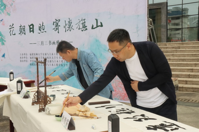4月22日,交通与土木工程学院在旗山校区举办“花朝日煦寄怀旗山”三月三书画雅集活动。中国书法家协会会员、福建省篆刻学会会长、福州市书法家协会主席吴昌钢等十位书法家,以及校党委学生工作部部长肖红新、交通与土木工程学院党委书记黄文龙、校党委宣传部副部长郭联凯等200多名师生参加活动。