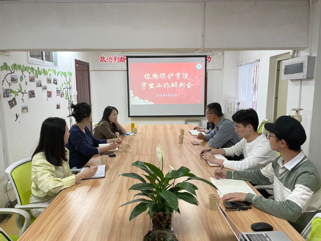 4月23日下午,植物保护学院在“一站式”学生社区青果助力站会议室召开学生工作研判会并部署学生工作调查研究六项行动任务,会议由学院党委副书记陈文滨主持,校学生工作部胡庆庆及学院全体辅导员参加会议。