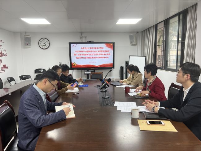 会议指出,作为马克思主义学院,要先学一步、学深悟透,全体党员干部要深刻认识习近平总书记关心指导我校建设发展的重要讲话重要指示批示精神,要带着感情学、带着责任学、带着信仰学,在先学先悟的过程中更加深刻地感受习近平总书记的深切关怀和殷殷嘱托,要把学习贯彻习近平新时代中国特色社会主义思想作为当前和今后的重要政治任务,用习近平新时代中国特色社会主义思想指导和推动工作学院各项工作。