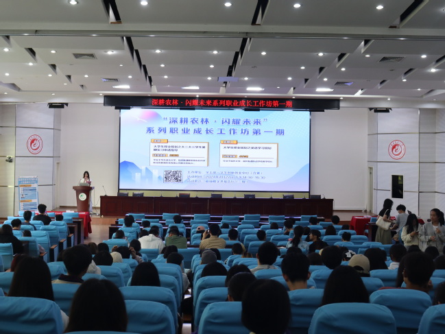为深入学习贯彻习近平新时代中国特色社会主义思想,落实就业优先战略,积极推动全过程就业育人落地见效,4月27日下午,由学工部、学生创新创业中心(合署)主办、校大学生创新创业协会承办的“深耕农林·闪耀未来”系列职业成长工作坊第一期分享会在禧强楼学术报告厅举行。本次分享会邀请杭州求职无忧教育科技有限公司联合创始人何晓璐和福州新通外语学校教学校长卓先明两位嘉宾就学生暑期实习申请指导和英语学习规划进行分享。