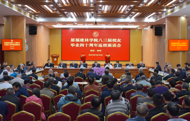 4月30日上午,原福建林学院八三届校友毕业四十周年返校座谈会在金山校区常盛会议中心举行。校党委书记王建南、校长兰思仁、副校长林庆藩,八三届同学教师代表与返校校友欢聚一堂,共叙情谊,共话发展。校相关部门及学院负责人参加会议。会议由毕业四十周年返校活动筹备委员会主任林群主持。