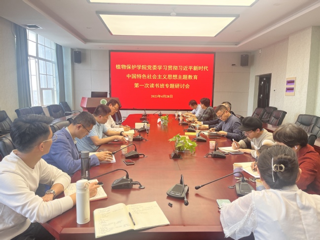 4月28日下午,植物保护学院党委在博学楼703会议室召开学习贯彻习近平新时代中国特色社会主义思想主题教育第一次读书班专题研讨会。学院领导班子成员、科级干部、辅导员等参加。会议由学院党委书记沈必胜主持。