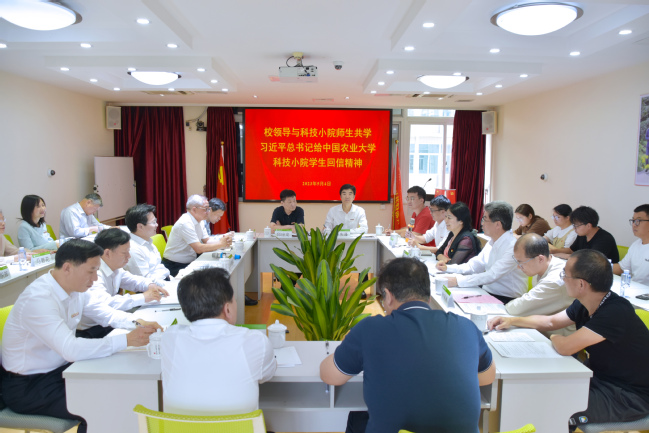 会上,与会人员认真学习了习近平总书记给中国农业大学科技小院学生的重要回信,听取了社会服务处、科技小院有关负责人关于学校科技小院建设情况汇报,交流了学习心得体会。与会校领导班子成员结合学校工作实际,围绕如何贯彻落实好习近平总书记的重要回信精神,逐一作了发言。