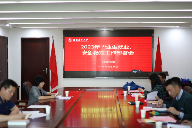4月28日下午,乡村振兴学院在东苑办公区512会议室召开2023年毕业生就业和安全稳定工作部署会,学院领导和学院全体教师、政工干部参加会议。会议由院党委副书记陈玲凤主持。