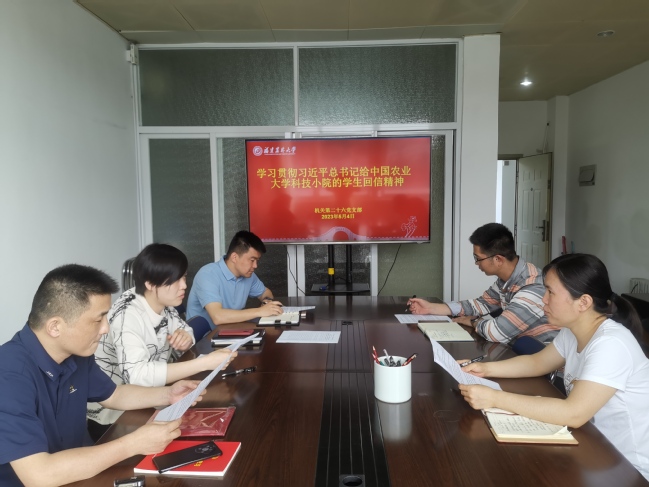 5月4日下午,社会服务处组织召开主题党日活动,深入学习贯彻习近平总书记给中国农业大学科技小院学生回信精神。会议由党支部书记黄倩主持,全体党员同志参加。