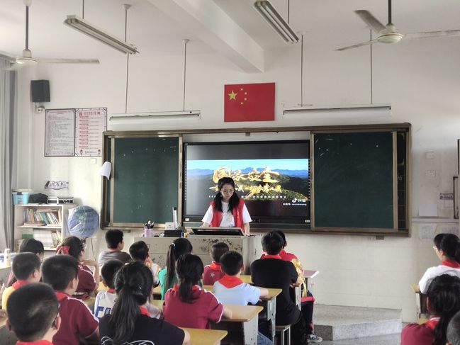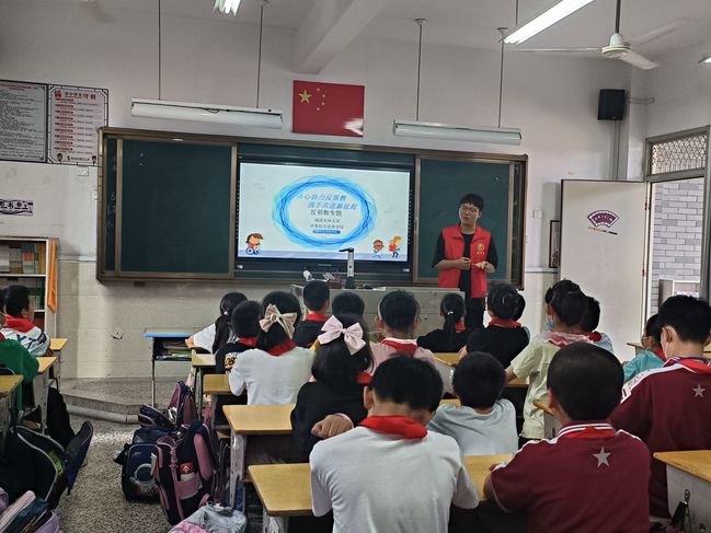 同日,学院绿伞志愿服务队在洪塘中心小学开展了以“齐心协力反邪教,万众一心护国安”为主题的支教志愿活动。志愿者们在课前反复研讨、多次模拟试讲,精心准备课程设计,然后以国家安全和反邪教为主题分组开展课堂教学。形象生动、流畅精彩的讲演让听课学生们理解维护国家安全和反对邪教的意义,帮助小学生树立责任意识,用小小肩膀扛起责任担当。
