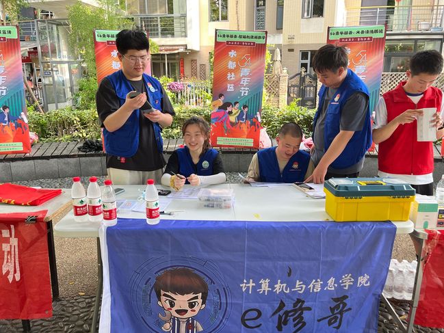 为弘扬“五四”精神,发扬“奉献、友爱、互助、进步”的志愿者精神,5月4日青年节当天,计算机与信息学院组织“e修哥”志愿服务团、绿伞志愿服务队分别到金山街道水都社区和洪塘中心小学开展志愿服务活动。