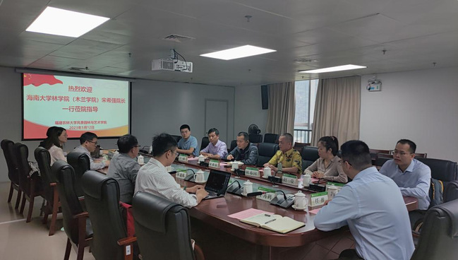 5月12日上午,海南大学林学院院长宋希强、木兰学院执行院长陈春国、林学院副院长王健和园林系主任赵莹一行莅临风景园林与艺术学院交流访问。学院副院长(主持工作)彭东辉,副书记陈建辉,风景园林系主任李房英、园林系主任翟俊文等教师出席了交流会。彭东辉与宋希强、王健分别结合所在学院办学特色进行了介绍。会议交流期间,双方就学科建设对标与发展、闽台交流合作经验、国家公园研究院及科技小院建设运行等相关内容进行了座谈交流。