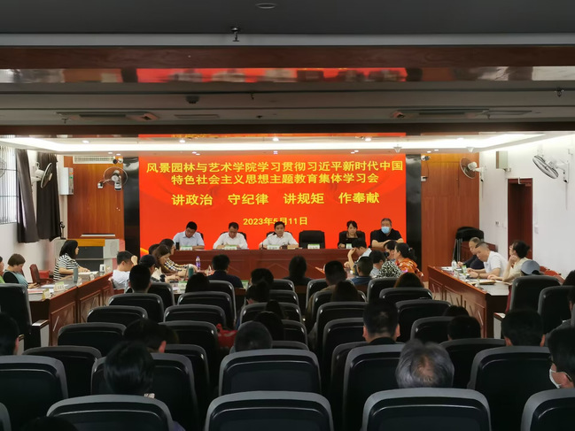 5月11日下午,风景园林与艺术学院党委在旗综1204会议室召开深入学习贯彻习近平新时代中国特色社会主义思想主题教育集中学习会。学院党政领导班子,全院教职员工参加会议。会议由学院党委书记雷国铨主持。