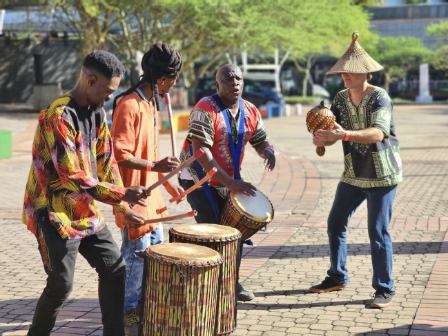 场外的激昂热烈的非洲鼓表演