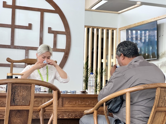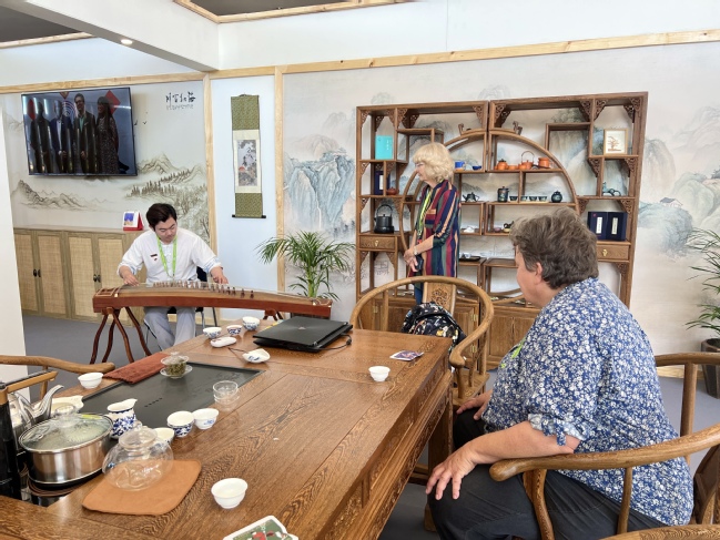 作为南非首个中国茶文化体验中心,中国传统茶艺在这一极具特色的非洲旅游文化盛宴上的精彩亮相,无疑是一种意义非凡的文化碰撞。在这古香古色的茶室里,茶香弥漫,琴声悠扬。美轮美奂的茶具、行云流水的茶艺和典雅的古筝演奏共同构成了一幅传统文化之画卷。参观者们在近距离体验茶艺的同时,还亲身感受到了中国茶文化的独特魅力与韵味,给每位参观者们留下了独特而难忘的记忆。