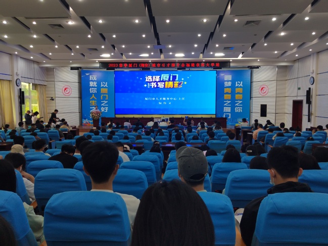 推介会上,厦门市人才服务中心主任包伟文就厦门城市概况和人才引进政策进行了宣讲。洪求瑛详细介绍了翔安区区情及相关区级人才政策,充分展示了翔安区广阔的发展前景和良好的就业环境,欢迎广大毕业生到翔安“寻梦、筑梦、追梦、圆梦”。随后,厦门相关知名企业代表就公司招聘岗位进行了现场推介。学生工作部、学生创新创业中心(合署)负责人、全体毕业班辅导员及学生代表等300余人参加了会议。