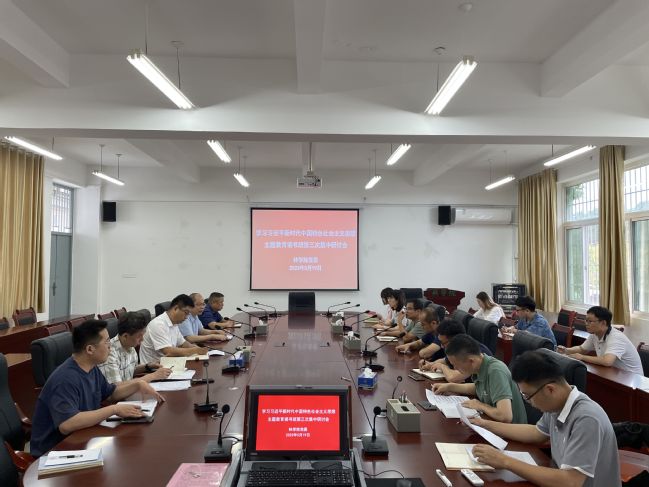 5月19日下午,林学院党委于诚智楼A206召开学习贯彻习近平新时代中国特色社会主义思想主题教育读书班第三次集中研讨会,学习贯彻习近平总书记关心指导菌草事业发展的重要指示批示精神。学院领导班子成员、党委委员、教工党支部书记、全体政工干部参加研讨。学院党委书记蓝天水主持会议。