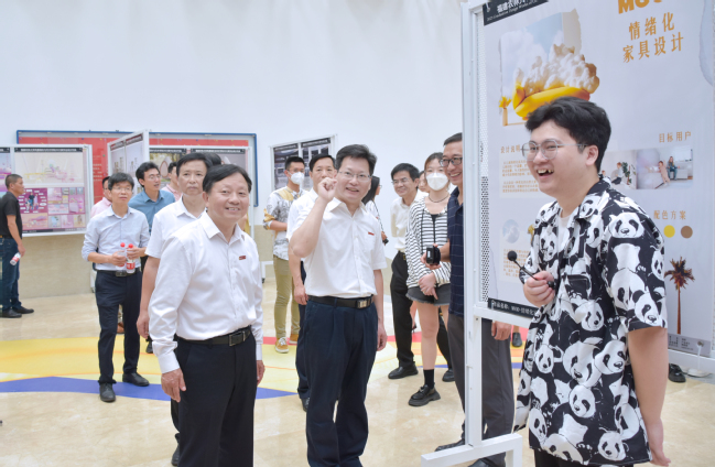 校领导对毕业设计展的举办给予充分肯定。校领导指出,毕业设计展不仅是学生学习成果的集中展示,更是了解学院学科专业建设、教育教学成效以及人才培养质量的重要窗口。毕业设计要加强顶层设计与师生探索相结合,坚持政治性、思想性和艺术性相统一,创作的作品要更好地展现当代学子的价值追求和责任担当。