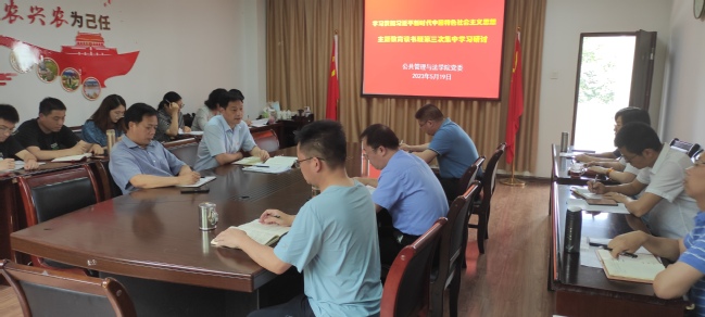 5月19日,公共管理与法学院党委书记曾起郁主持开展学习贯彻习近平新时代中国特色社会主义思想主题教育读书班第三次集中学习研讨,学习贯彻习近平总书记关心指导菌草事业发展的重要指示批示精神。读书班成员、科级干部、教工党支部书记、系主任、辅导员参加学习。