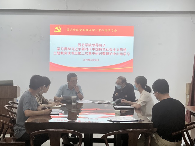 5月18日下午,园艺学院党委在园艺楼一层会议室召开学习贯彻习近平新时代中国特色社会主义思想主题教育读书班第三次集中研讨暨理论学习中心组学习,学院领导班子全体成员参加研讨会。会议由学院党委书记余顺兴主持。