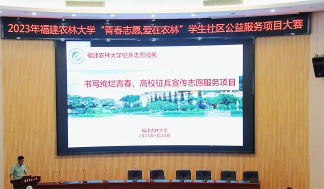 5月20日下午,由校党委学生工作部、宣传部、校团委和后勤管理处主办的“青春志愿,爱在农林”学生社区公益服务项目大赛在博学楼报告厅举行。