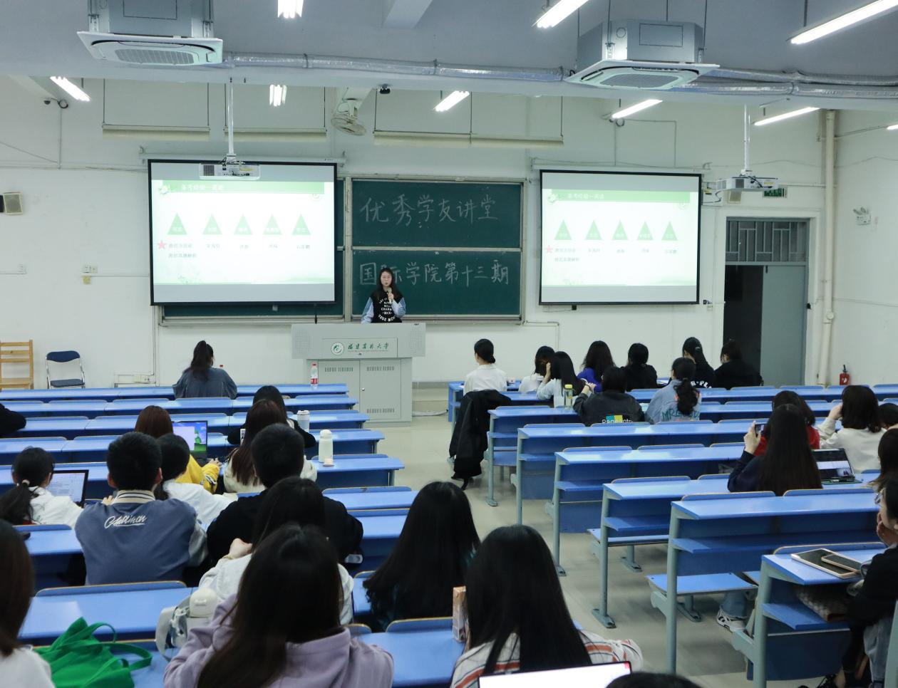 近期,国际学院在禧强楼107教室举办第十三期“优秀学友讲堂”。此次活动由国际学院团委主办,学院学生会学术与科技创新部承办。学院辅导员及各年级学生代表共100余人参加讲堂。