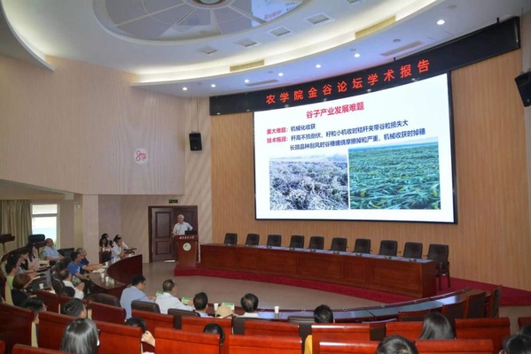 刁现民向大家介绍自己从事谷子遗传育种工作30多年来的经验和成就,解析了谷子矮秆材料的遗传和生理机制,创制了在株型育种中起骨干作用的矮88,推动了谷子生产的绿色革命;解析了控制谷子株高的主效基因位点,并以此建立了谷子株型的精准设计育种技术;分析了将谷子作为C4光合和禾谷类作物功能基因研究新模式作物的可行性和优越性。