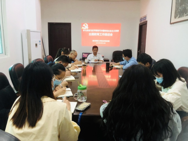 会议传达了校主题教育工作推进汇报会的主要精神,并就学院下一步更好地开展主题教育作出再强调再部署。会议指出,主题教育开展以来,在校主题教育领导小组办公室的有力指导下,学院通过“四个紧抓”高效推动主题教育开展,取得阶段性成效。但在提升理论学习成效、丰富调查研究、发挥优势特色、浓厚氛围营造、精准检视整改等方面还有较大提升空间。