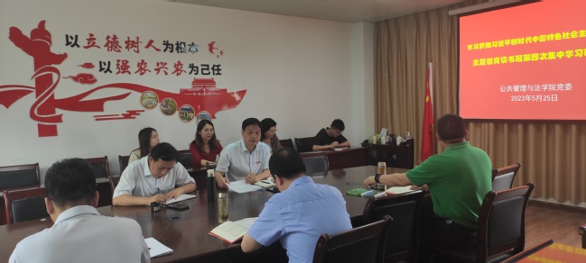 5月25日,公共管理与法学院党委开展学习贯彻习近平新时代中国特色社会主义思想主题教育读书班第四次集中学习研讨,学习贯彻习近平总书记关于集体林权制度改革的重要论述,聚焦实干担当促进发展,感悟思想伟力,汲取奋进力量。会议由学院党委书记曾起郁主持,学院读书班成员、科级干部、辅导员参加学习。