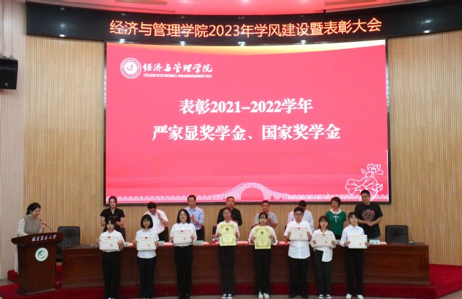 据悉,此次学风建设暨表彰大会是经济与管理学院推进深入学习贯彻习近平新时代中国特色社会主义思想主题教育的一项重要举措,通过表彰先进典范,激励全院师生以昂扬的精神状态和求真务实的工作作风,奋发有为,锐意进取,把学院的学风建设推上新高度,促进学院人才培养质量再上新台阶,为推进学校“双一流”建设贡献力量!