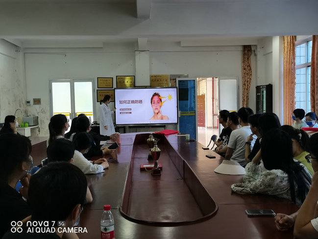 在映辉楼201会议室,师生聆听了医护人员带来的《痤疮科普知识》(主讲:黄舒燕)、《如何正确防晒》(主讲:康洁)、《特应性皮炎的临床表现与诊断》(主讲:倪咏珊)。讲座简练、通俗易懂,对护肤具有指导意义。