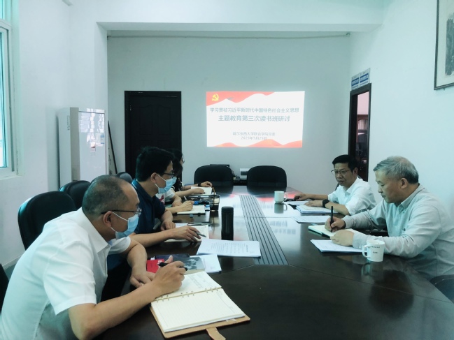 5月25日上午,戴尔豪西大学联合学院党委在明北附301会议室召开学习贯彻习近平新时代中国特色社会主义思想主题教育读书班第三次集中研讨会,院党委理论学习中心组成员参加,院党委书记林平主持会议并作重点发言。