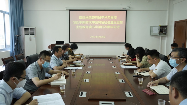 5月26日上午,海洋学院党委在学院会议室开展学习贯彻习近平新时代中国特色社会主义思想主题教育读书班开展第四次集中研讨。学院党委委员、领导班子成员、党支部书记、教学系(实验中心)负责人、科级干部、辅导员等参加。会议由学院党委书记黄毅军主持。
