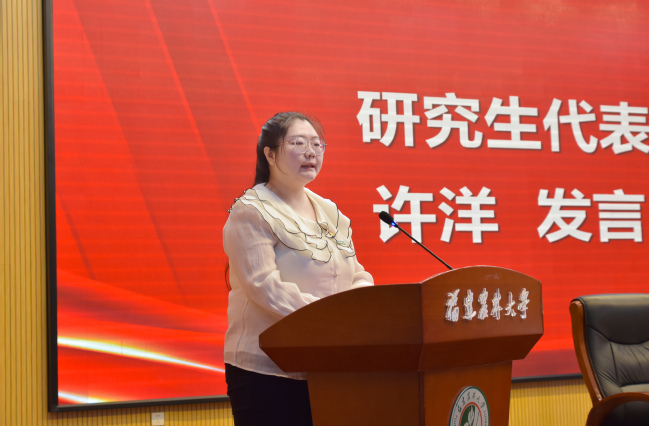 研究生代表、园艺学院2021级蔬菜学专业博士研究生许洋同学发言