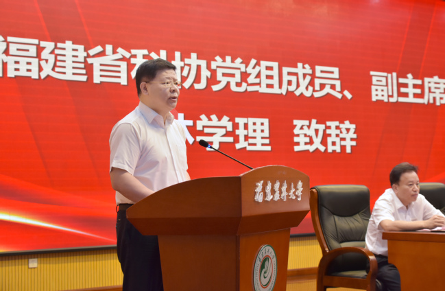 林学理在致辞中充分肯定了我校为全面推进农业科技现代化所作出的突出贡献。他对我校师生提出三点期望:一要筑牢思想根基,践行科学家精神。在学思践悟中坚定理想信念,在奋发有为中践行初心使命,在工作学习科研中大力弘扬和践行科学家精神,把科研做在新时代祖国的大地上,把个人的科学追求融入中华民族伟大复兴的事业中去。二要做好科学研究,厚植爱农情怀。怀揣一颗知农爱农的真心,在农业基础研究中不断探索,在服务发展中不断前行,产出更多原创性研究成果,促进科技经济深度融合,更好地服务我省农林科技高质量发展。三要深入乡土中国,练就兴农本领。用双脚丈量土地,在服务地方特色产业发展中持续打造福农品牌,练就兴农本领,持续在乡村振兴的舞台上建功立业。
