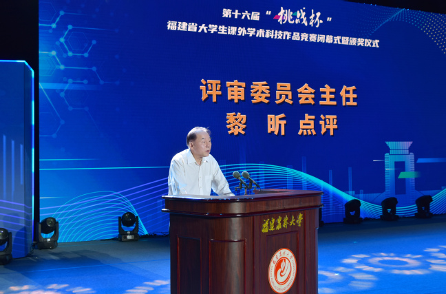 黎昕对赛事工作进行了点评。他从参与面与影响力、作品的科技含金量和经济社会价值、竞赛机制等三个方面分析了本届挑战杯赛事所呈现出的特点。他表示,我省“挑战杯”深深植根于大学生课外学术科技活动的土壤中,具有更加鲜明的导向性、示范性和群众性。他鼓励新时代的八闽学子在“挑战杯”的赛道上越战越勇,为打造“创新福建”贡献青春力量。