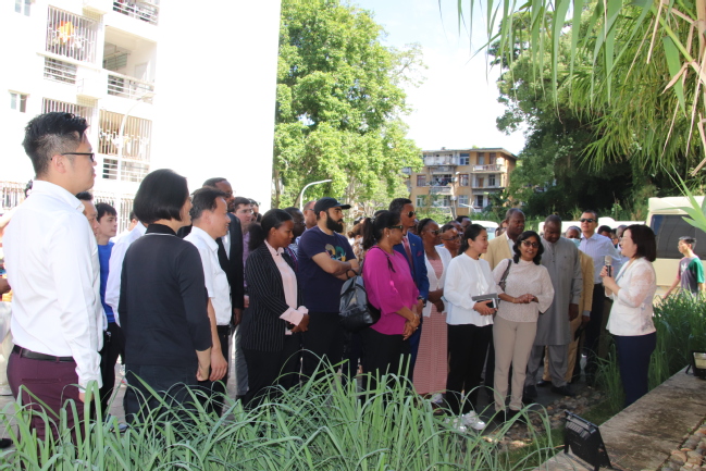 代表团一行参观了菌草源广场、国际菌草苑、菌草菇棚、菌草产品展示大厅、灵芝加工线等有关生产设施和展示。来访嘉宾详细了解了菌草技术在菌菇种植、菌草饲料、减贫脱困等方面的运用,听取了菌草技术在全球合作情况的介绍。在菌袋生产车间,代表团一行还与正在菌草中心学习菌草技术的发展中国家菌草技术培训班的学员们亲切交流。