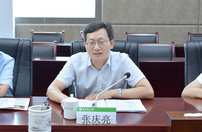 座谈会上,王建南代表学校对张庆亮、李红一行的到来表示欢迎,并简要介绍了学校建设发展的基本情况。他指出,安徽农业大学办学历史悠久,培养了大批人才,走出了一条享誉全国的“大别山道路”。他表示,双方同为农林院校,都肩负着办好新时代高等农林教育的重大使命,希望双方进一步加强交流、深化合作,共同探索适应农业农村现代化需求的高等农林教育人才培养和科技创新体系,开辟新领域新赛道,塑造新动能新优势,为全面推进乡村振兴、加快建设农业强国作出应有贡献。