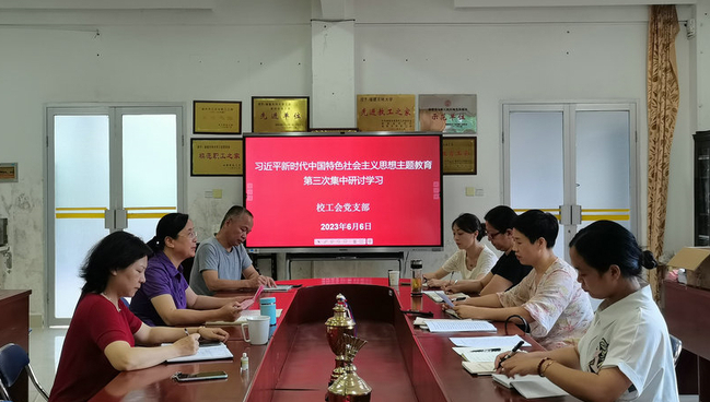 6月6日下午,校工会党支部开展学习贯彻习近平新时代中国特色社会主义思想主题教育第三次集中研讨学习,会议由支部书记张华英主持。