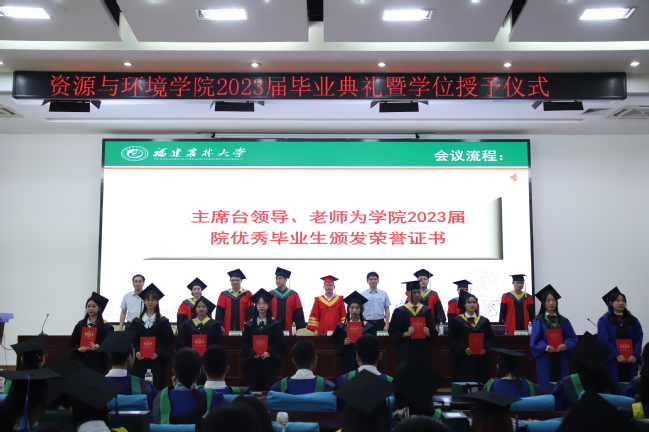 张黎明宣读了《关于表彰开云网页版资源与环境学院2023届优秀本科毕业生的决定》、吕健宣读了《关于表彰开云网页版资源与环境学院2023届优秀研究生毕业生的决定》,并进行院优秀毕业生的表彰仪式。