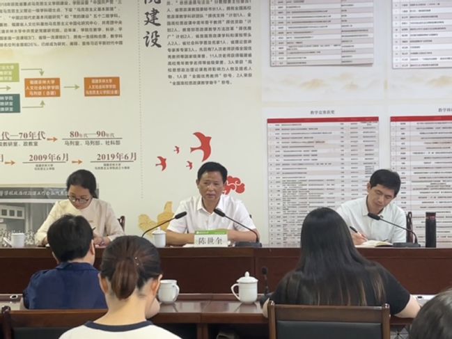 6月6日下午,马克思主义学院党委在学院104会议室开展学习贯彻习近平新时代中国特色社会主义思想主题教育第二次读书班暨学习贯彻省委书记周祖翼莅校讲授思政课时的讲话精神专题研讨会,校党委副书记陈世奎、学院领导班子成员、全体教职工参加会议。